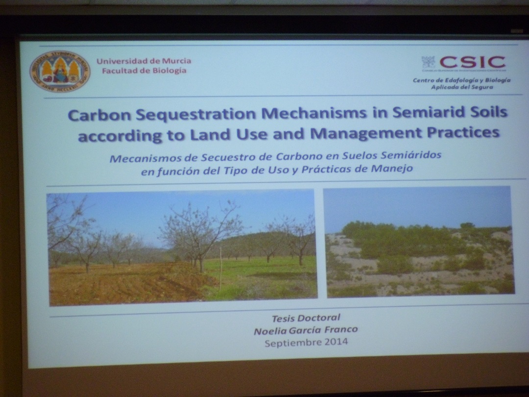 We are happy to inform that the 15th of September our colleague Noelia García Franco successfully defended her PhD thesis (Cum Laude) entitled ‘Carbon Sequestration Mechanisms in Semiarid Soils according to Land Use and Management Practices’.